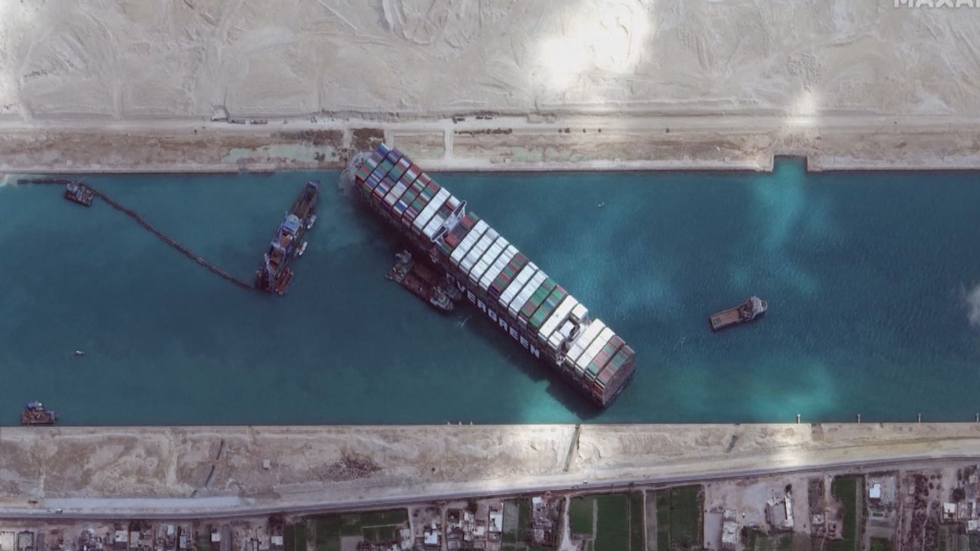 【Now新聞台】在蘇彝士運河擱淺的巨型貨輪長賜號仍未解困,再多兩艘拖船加入救援。有消息指,在貨輪船頭下方發現有巨石阻擋,影響救援進度。