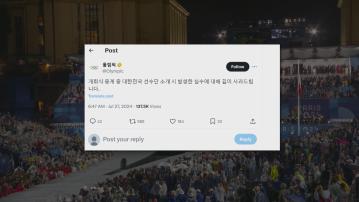 身在巴黎出席儀式的南韓文化體育觀光部第二次官張美蘭,已提出與國際奧委會主席巴赫見面。國際奧委會隨後於社交網站官方帳戶,以韓文向南韓致歉,指於介紹南韓運動員時出錯,深表歉意。