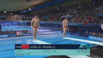 王宗源上屆東京奧運與謝思埸合力贏金牌,今屆與龍道一合作,顯示實力與默契,頭兩跳後總分107.4,是8隊經過兩輪後,唯一突破一百分的組合。