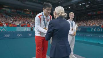 巴黎奧運乒乓球男單金牌得主樊振東:「我覺得還是非常開心,作為我自己來說的,能獲得這面金牌,對我意義也非常重,非常沉甸甸的一個冠軍。還是相信自己的實力、能力,我覺得自己在場上不亂,和還是能夠把比賽帶到自己節奏裡。」