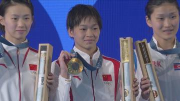 國家隊女子10米高台跳水銅牌得主陳芋汐:「能為中國代表團摘下這枚金牌包括銀牌,就已經非常自豪了,然後其實也恭喜我隊友。」