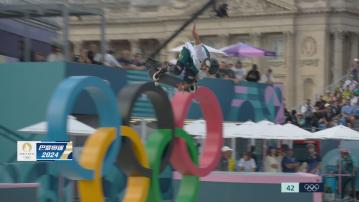 裁判按空中動作的高度、速度,以及利用弧面和障礙物的能力評分。這位衛冕「板仔」用盡45秒時間,接連施展轉身絕技,順利踩回上平台,先拍拍手,第一輪已獲得93.11分,亦憑這一輪鎖定金牌,蟬聯冠軍。