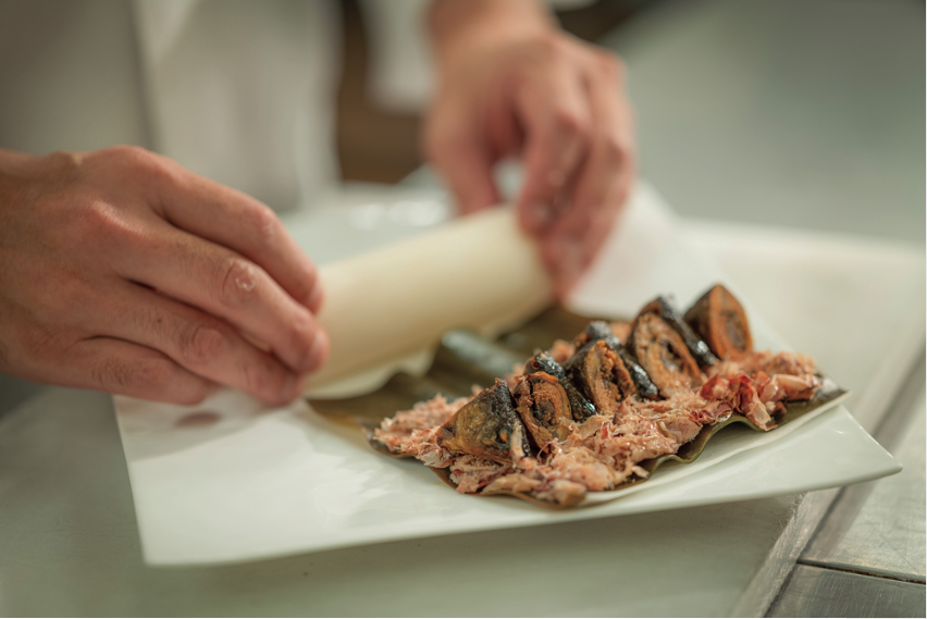 「尾州卷」是其中一款著名的菜色,從17 世紀以來流傳至今,做法是把鰹魚片、昆布海帶和香魚甘露煮放在白蘿蔔裡一起燉煮。