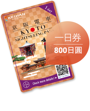 可不限次数塔乘京阪電車的本線、宇治線,以及石清水八幡宮站(石清水八幡宮參道纜車的換乘站)到出町柳站之間。方便遊覽京阪電車沿線的東山、宇治、伏見等觀光區域。