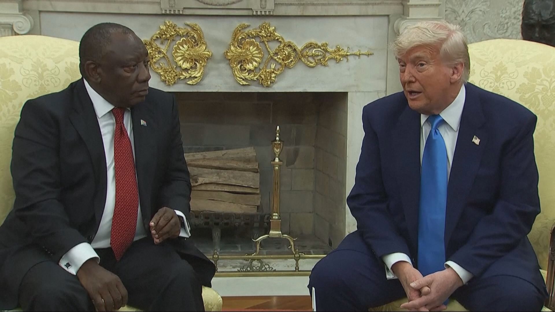 拉馬福薩周三到訪白宮,特朗普在門外迎接。兩人在橢圓形辦公室會見傳媒,期間特朗普批評南非政府的徵地政策針對白人農民,沒收他們的土地。他又引述傳媒報道指白人農民更成為攻擊目標,甚至被殺害,指控南非政府容許當地出現「種族滅絕」。