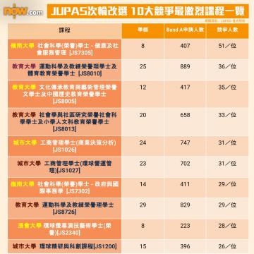 JUPAS次輪改選10大競爭最激烈課程|一表睇清(每學額競爭人數取整數)