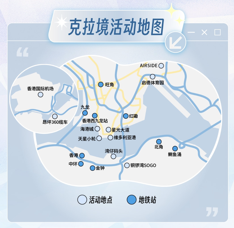 地點:香港國際機場/啟德體育園 /海港城/銅鑼灣SOGO/9個港鐵站