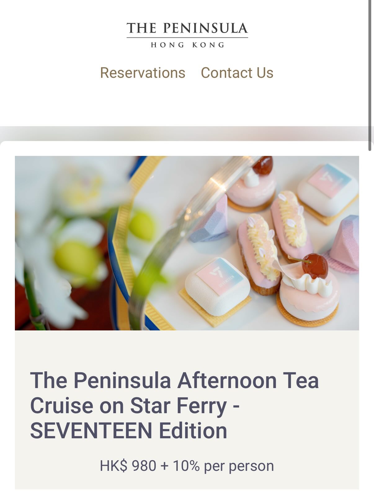 另外,酒店即日起推出聯名禮品套裝,包含主題造型朱古力與行李牌。而一向受歡迎的「天星小輪下午茶維港遊」更將推出「CARAT專屬航程」,粉絲可一邊乘搭天星小輪,一邊享用SEVENTEEN主題的下午茶套餐,有預算的CARAT不妨