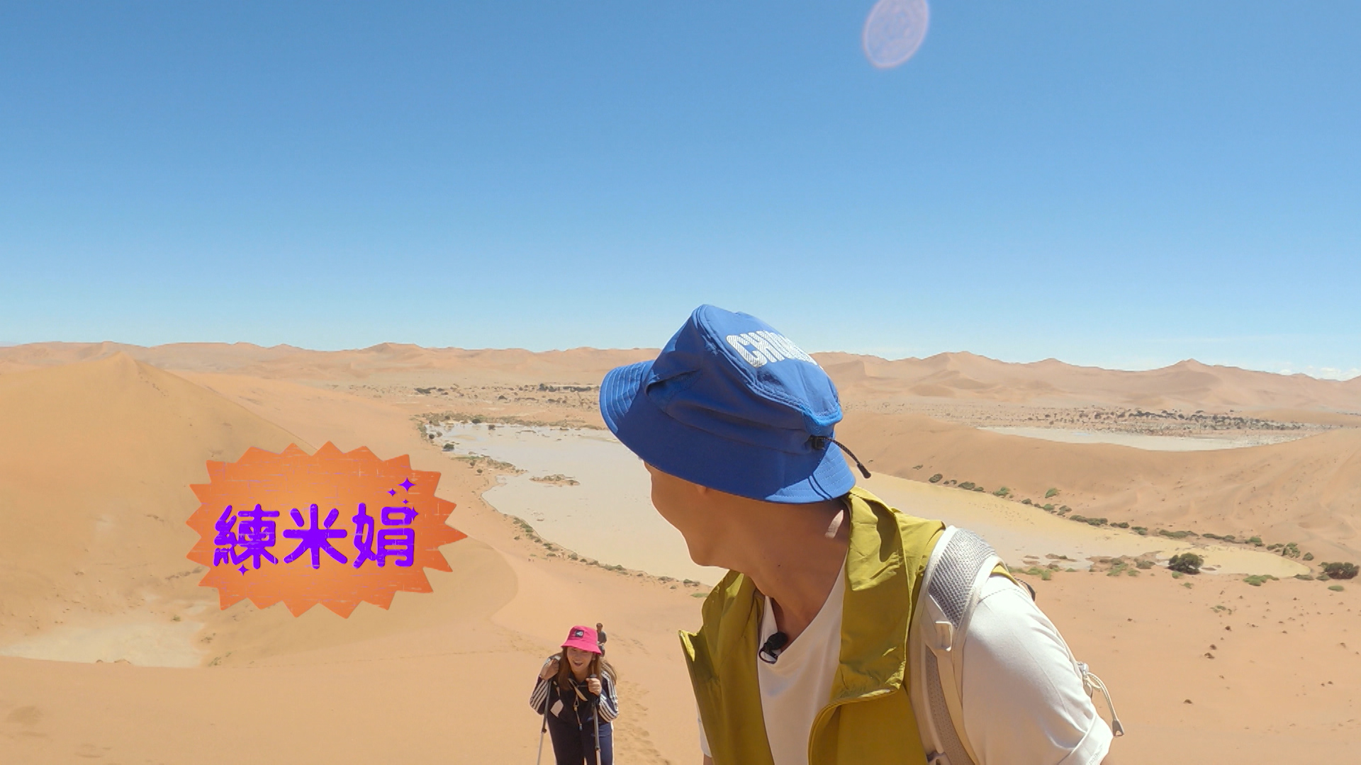 位於納米布沙漠南部的索蘇維來(Sossusvlei)被譽為納米比亞最美麗的沙丘帶,今次Chris和娟姐將挑戰這裡最高的觀光沙丘。出發前,娟姐做足準備,特意帶上行山仗並表示:「佢哋話喺你冇力嘅時候,都可能幫到你少少嘅,所以我願意依家開始用佢。」