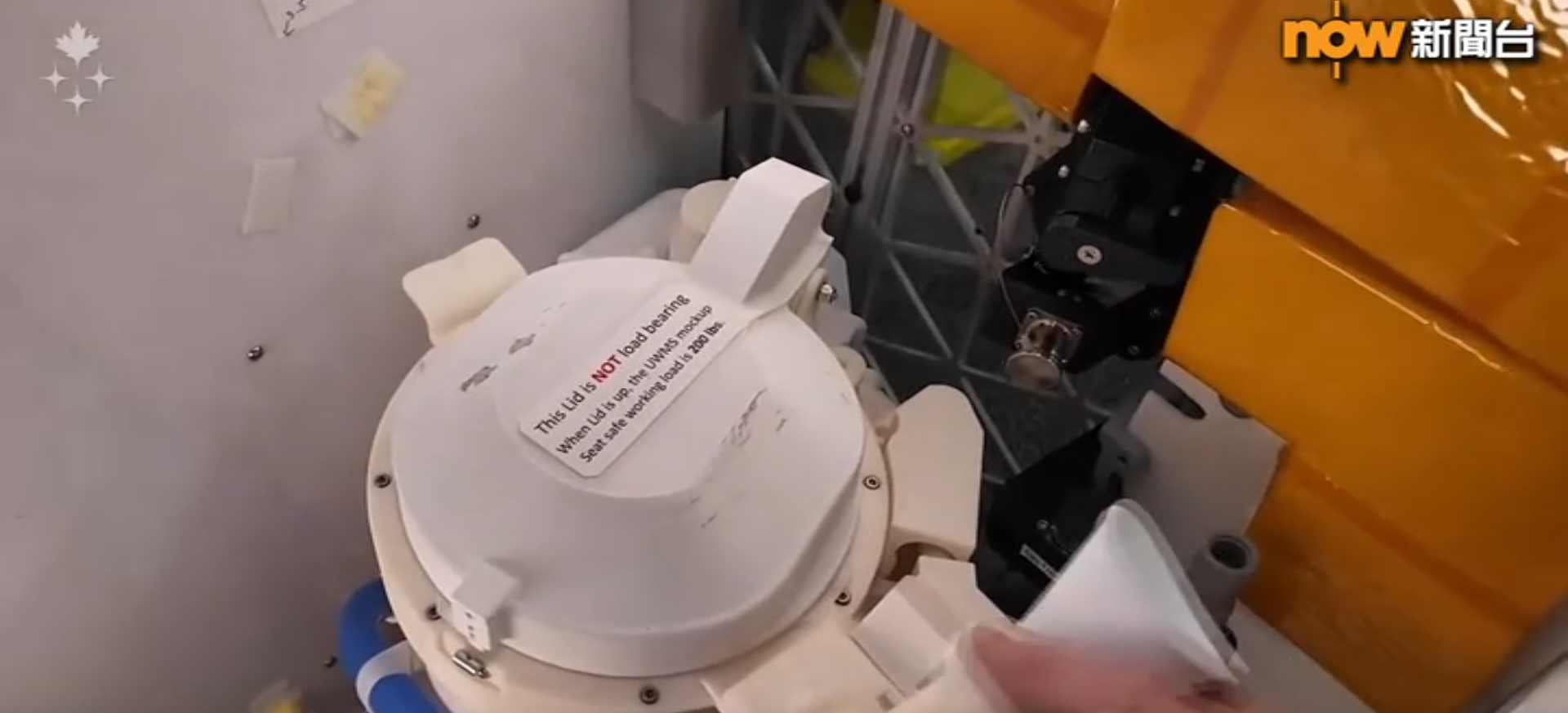 太空船升空後廁所故障,女太空人科赫在指示之下,拔下尿液輸送軟管並重啟系統。