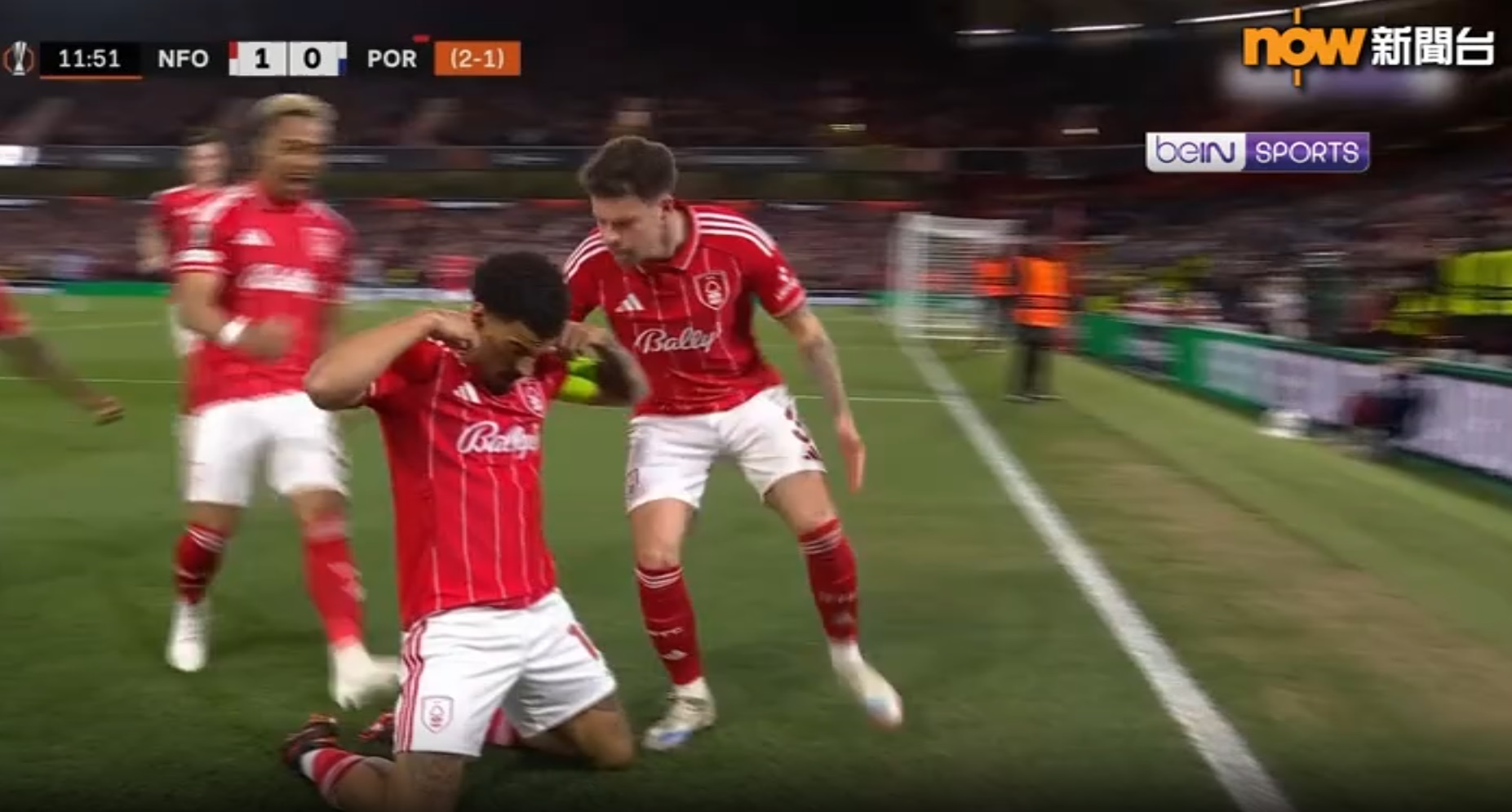 四強會鬥森林,這支於英超護級的球隊,另一場迎戰波圖,早段就有基斯活被對方的碧拿歷踢腳,球證翻看重播出示紅牌,波圖8分鐘踢少個。