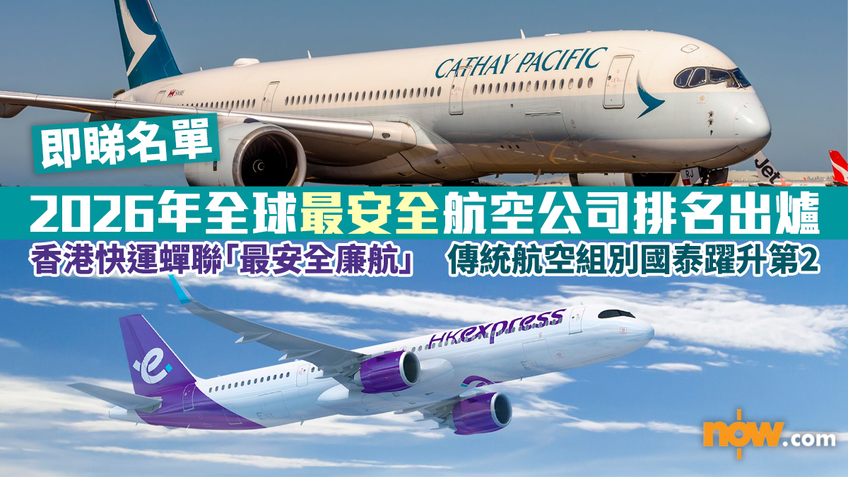 【Now.com】國際航空評級機構AirlineRatings近日公布了2026年度全球最安全航空公司排名,在320家航空公司中選出最安全的25間傳統航空公司及低成本航空公司。其中香港的航空公司繼續有好表現,國泰航空及集團旗下的香港快運(HK Express)均名列前茅,即睇排名!