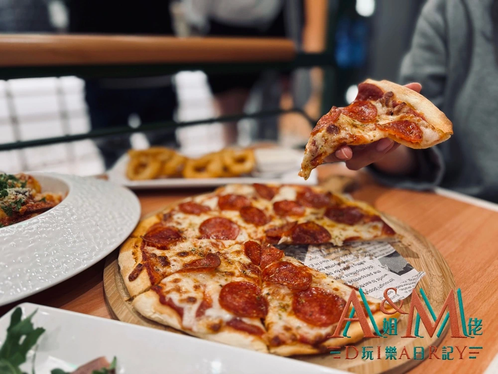 即叫即焗嘅Pizza就係新鮮!厚薄適中嘅餅底上面舖滿厚厚嘅馬蘇里拉芝士同大量薩拉米香腸,啖啖都係辣薩拉米腸嘅鹹香同芝士嘅奶香味,仲可以拉絲添呢!
