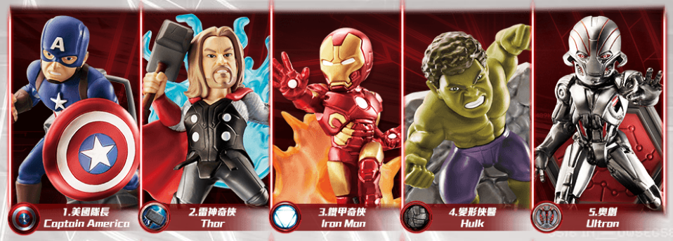 1-5號figure,Iron Man同Hulk都好可愛!