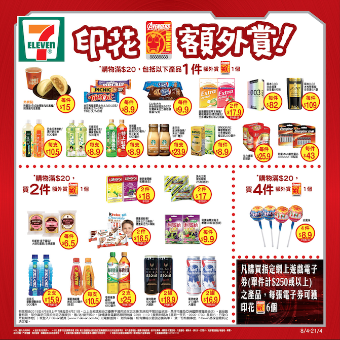 【now.com】捱多兩個星期就可以睇《復仇者聯盟2:奧創紀元》喇!等唔切的Marvel迷換住figure止癮先啦,7-Eleven同Marvels聯手合作,率先推出3吋半的迷你figure造勢,10個角色齊晒,今日開始換印花喇,買某些產品更可額外多一個印花,例如珍寶珠、利賓納軟糖、清熱飲、藍帶啤酒等,仲唔快啲去買嘢!另外,到7-Eleven官網玩遊戲更有機會免費獲得全套10款figure!