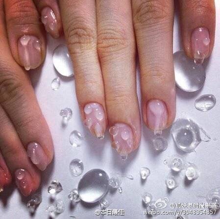 水滴美甲看上去猶如雙手未擦乾一樣。