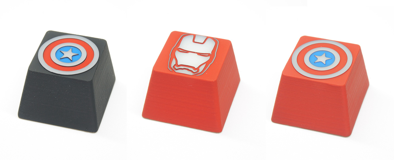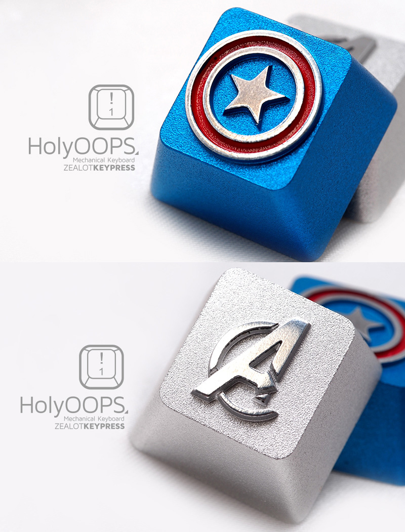 Metal Key Caps的復仇者及美國隊長款式,US$28.5m一粒,約為HK$220。(官方網站圖片)