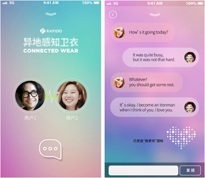 【now.com】情侶如果要被迫分隔兩地,就要無可奈何地承受相思之苦。電子品牌SAMSUNG旗下的服飾品牌RAPIDO最近製造了一款情侶外套叫「Connected Wear」,只要穿上之後並連接手機應用程式,外套就會出現心形等等不同圖案,讓身在外地的另一半感受到愛意。