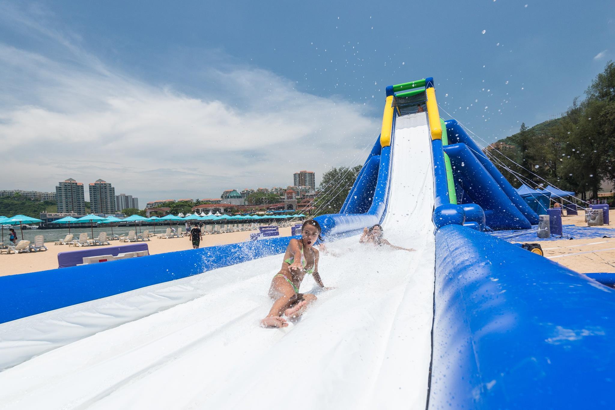 據愉景灣Facebook專頁指,他們最近在大白灣沙灘上設了巨型充氣滑梯,高11米,長56米,日期由8月1日至30日,上午11時至下午6時,免費開放俾公眾任玩,只要身高有130cm或以上就可以排隊玩。而沙灘方面由7月15日(下周三)開始,更有救生員駐守,亦有免費提供太陽遮同沙灘椅予公眾使用。