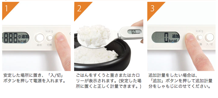 這款飯勺設有一個小小的計算器,只要一盛飯就可以測出該份量的白飯有多少熱量,而讀數範圍由5-519卡路里。該產品網站更指出,一餐飯最合適的飯量約為140克(約235kcal)。不過,這款飯勺就只能夠測量普通白米飯的熱量,五穀米、紅米飯等這些混合其他米類就不適用,售價要2296日元(約143港元)。