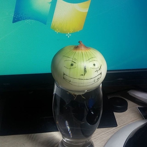 種法亦非常簡單,先準備一個不太大的器皿,加入少量清水,洋蔥放入後底部輕輕碰到水面就可以了。如果選擇的器皿是透明,你就可以睇到根部慢慢生長。當然作為劇迷就要學埋喺洋蔥面畫上表情,令「盆栽」變得更可愛。