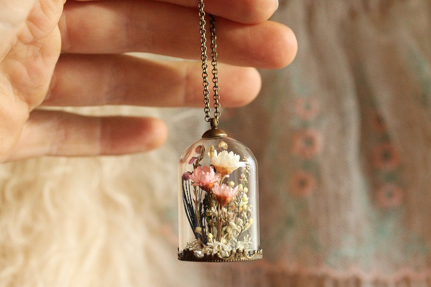 網上好容易就找到可當頸鏈的小瓶,把乾花放進去,就可以隨身帶著,走走文藝風之餘,又可以買少件飾物,環保又省錢。有自己油開指甲的女士又可以運用乾花美甲,保證獨一無二,唔會同人撞款。