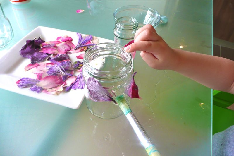 只需準備開稀了的白膠漿,就可以用掃輕易把乾花貼在紙、玻璃上。大家可以按自己喜好,製成乾花畫,或貼在日記上,記錄別具意義的花束。