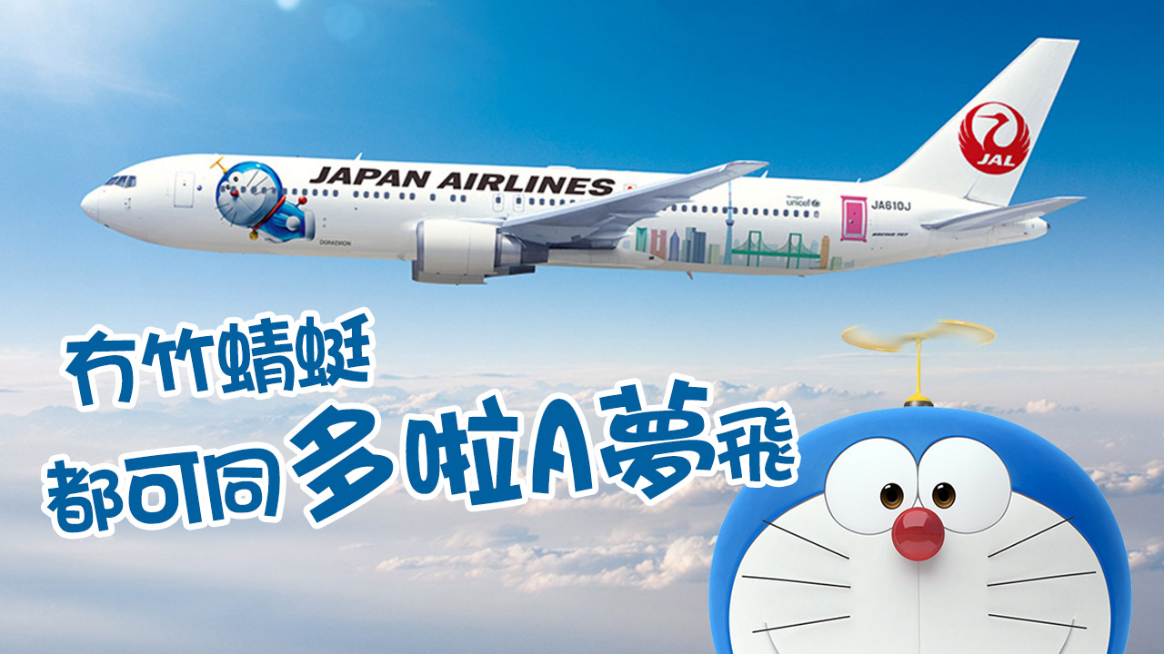 【now.com】航空公司除了以減價機票、優質服務作招來外,都常以卡通主題飛機吸引一眾粉絲乘搭。繼長榮航空的Hello Kitty飛機、ANA的星球大戰飛機後,日本航空(JAL)日前就宣布將於9月22日推出以多啦A夢為主題的波音767-300飛機,服務往來成田機場及上海浦東機場的乘客。