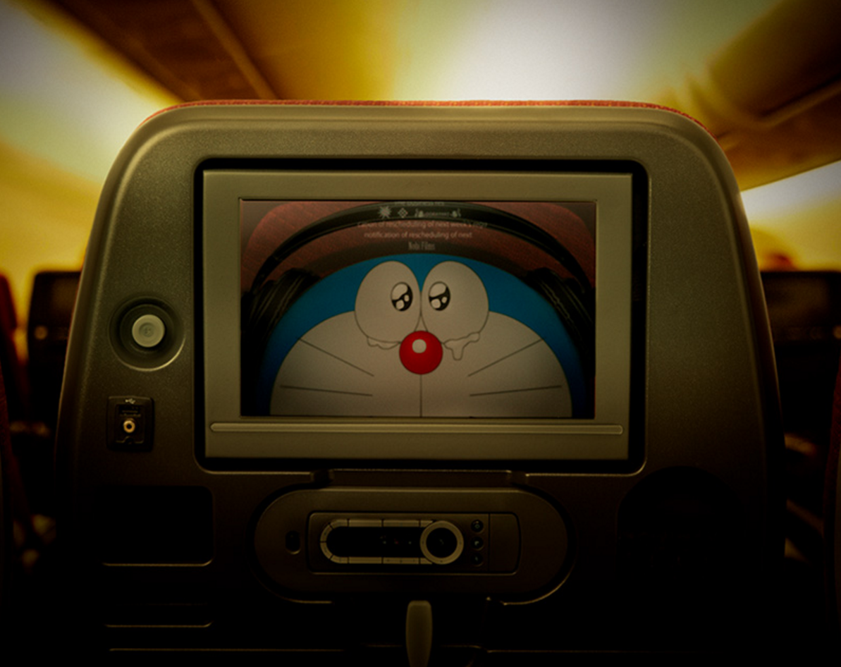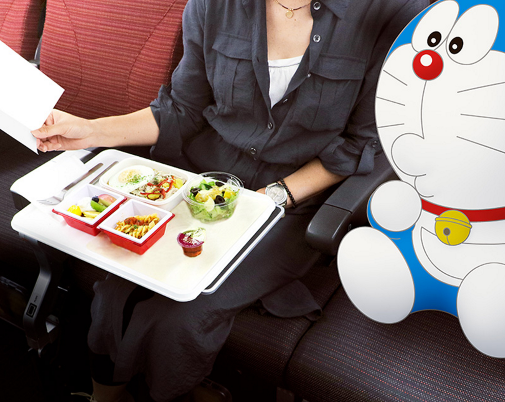 除了機身印有多啦A夢公仔,機倉內亦有多啦A夢原素,例如他的餐具、記念明信片等。JAL同時舉行有獎競猜活動,乘坐多於1次日航的中國乘客有機會獲得來往東京、上海的免費機票。
