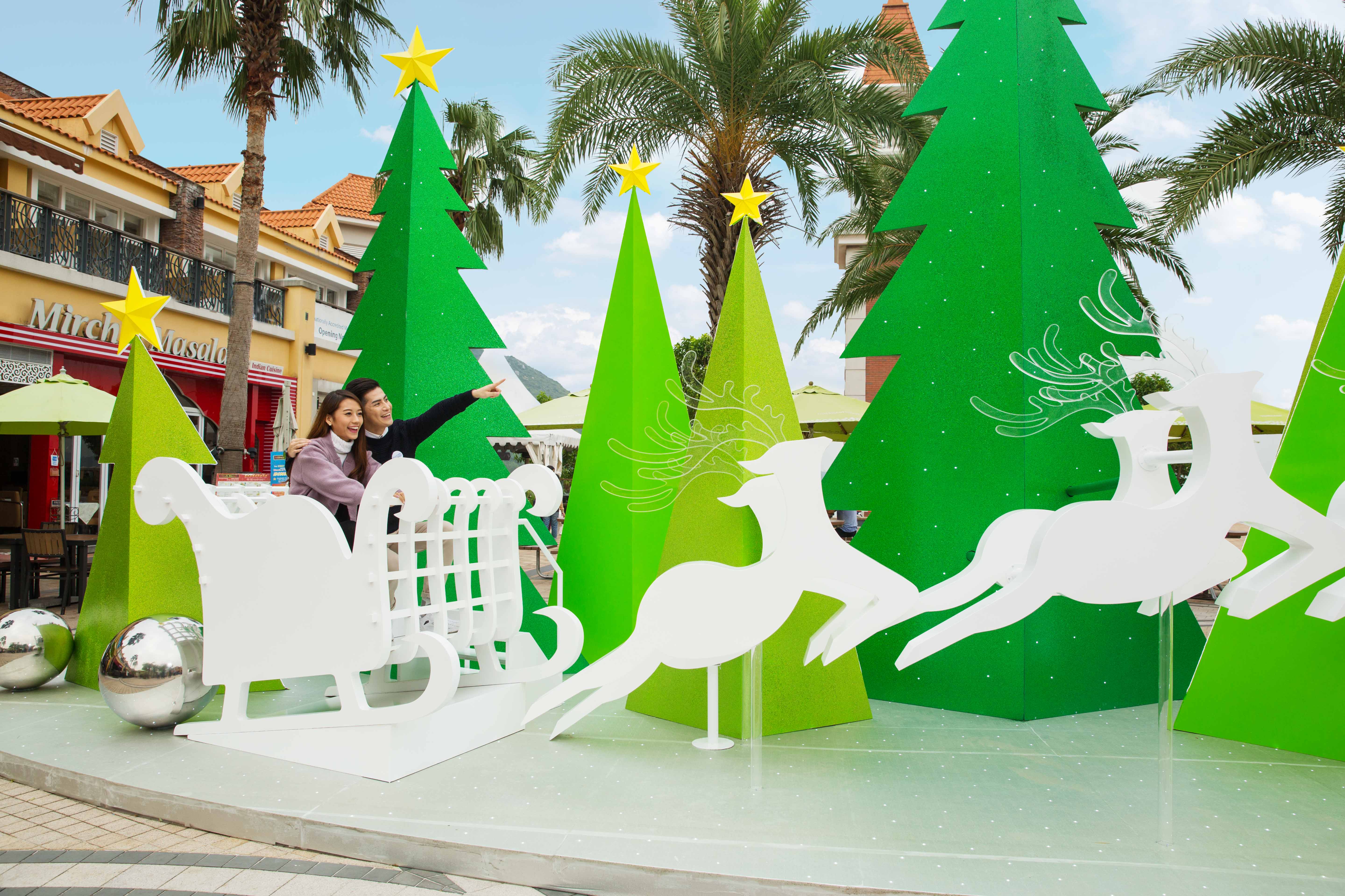一去到愉景灣碼頭,大家會先會看到《We Wish You A Merry Christmas》,巨型禮物盒於9米高空中打開,一串串聖誕節吊飾傾瀉而下,化成一棵聖誕樹。旁邊的星願室,以鏡及光效塑造出多變幻化的影像,非常浪漫。D’Deck海濱長廊則以《Jingle Bell》為靈感,架起巨型五線譜佈置,大家更可在特設的裝置敲出《Jingle Bell》旋律,夠晒氣氛!最後,《Santa Claus Is Coming To Town》就登陸愉景北商場,大家可以坐上鹿車一嚐做聖誕老人的滋味,旁邊的幻彩聖誕樹更會散發出白雪的氣味!