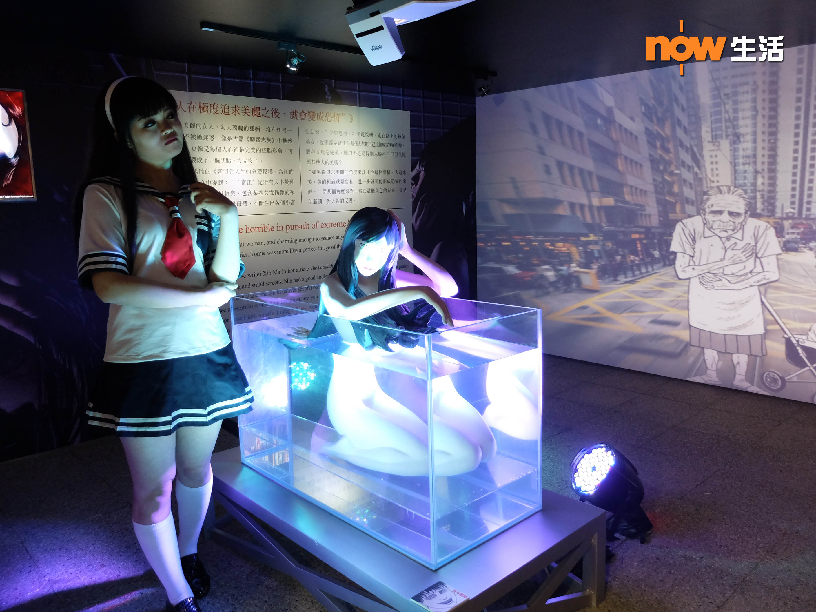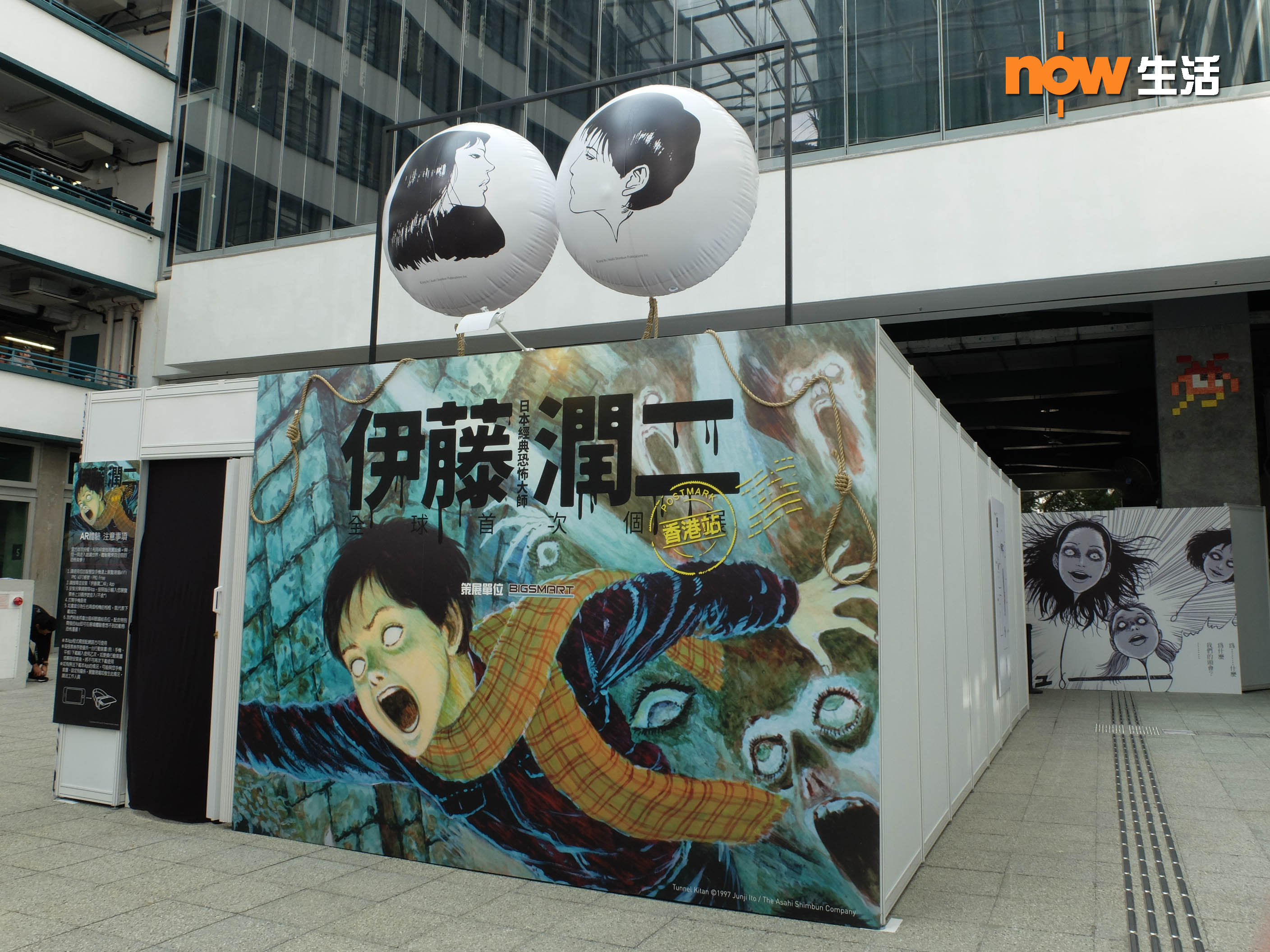 特地將伊藤老師筆下的漫畫主角與香港街景結合,創作出全新的漫畫場景,讓公眾感受經典角色出現於香港街頭的恐怖畫面,例如於廟街上空出現的「人頭氣球」!而重新長出的富江模型也是香港獨有。