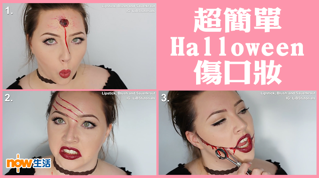 【now.com生活】過兩日就是Halloween萬聖節,要去Party但又唔識化特效裝?唔好再喺玩具街買面具咁求奇喇,學吓YouTuber Lipstick, Blush and Sauerkraut 化超簡單傷口妝啦,15分鐘就搞掂,連乳膠(Latex )都唔使買!