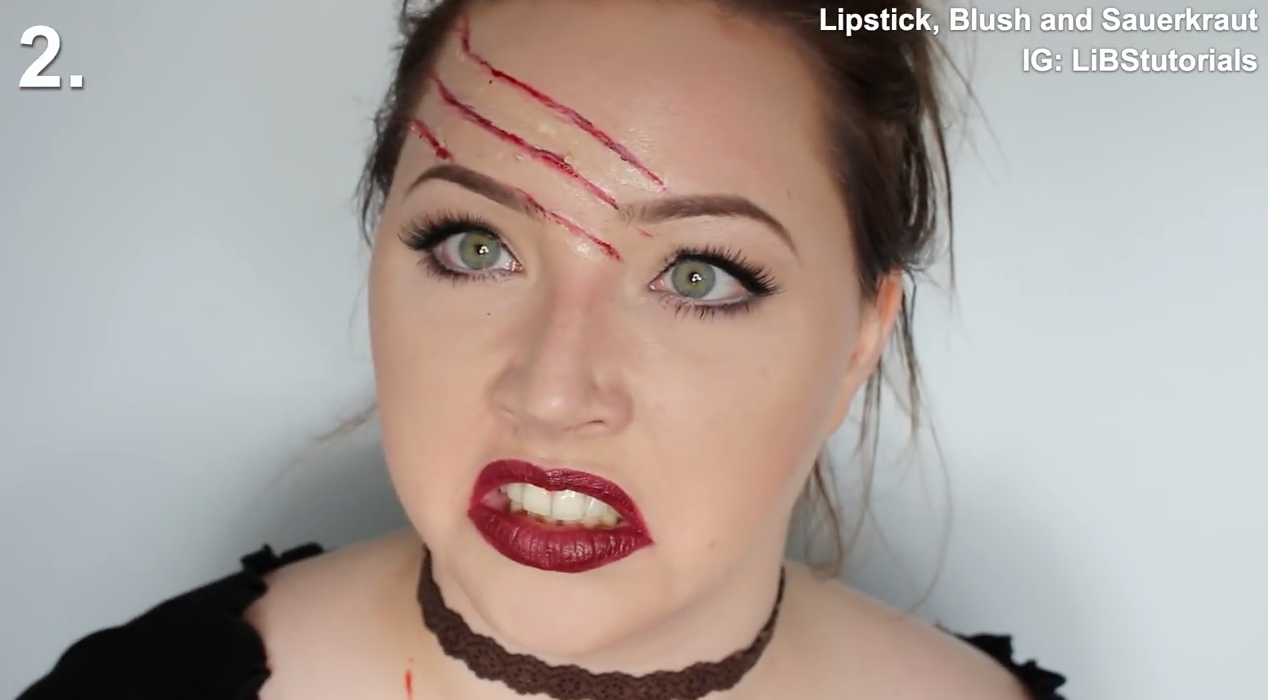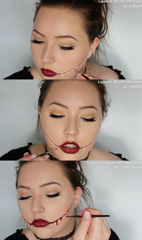 5.)如果想逼真啲,可以用眼線液/深色唇膏加強傷口凹凸效果