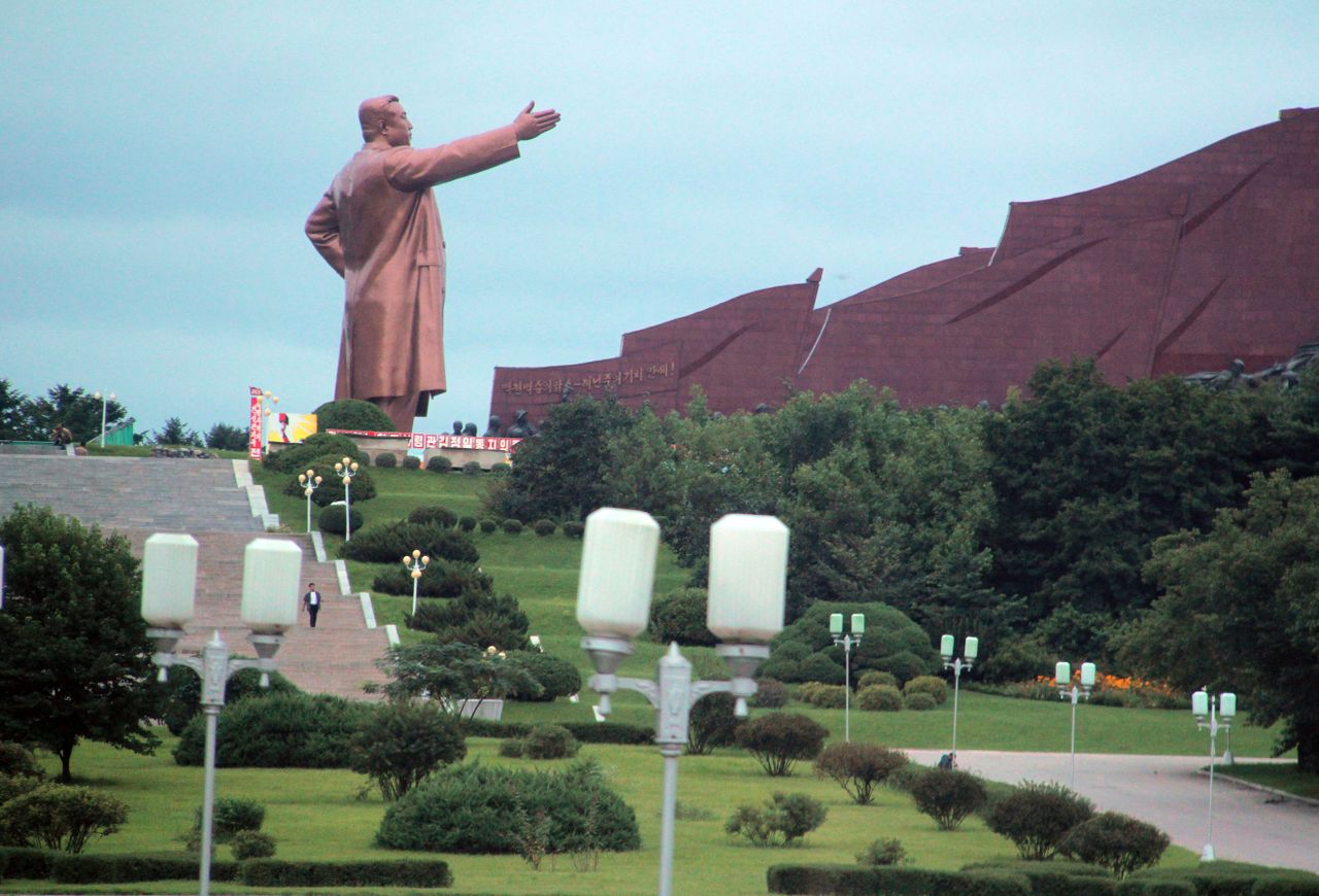 每天清晨,平壤的第一縷晨光,就會落在一座銅像上。當銅像由黑暗轉變成金碧輝煌、光芒萬丈的時候,平壤就迎了來新一天。