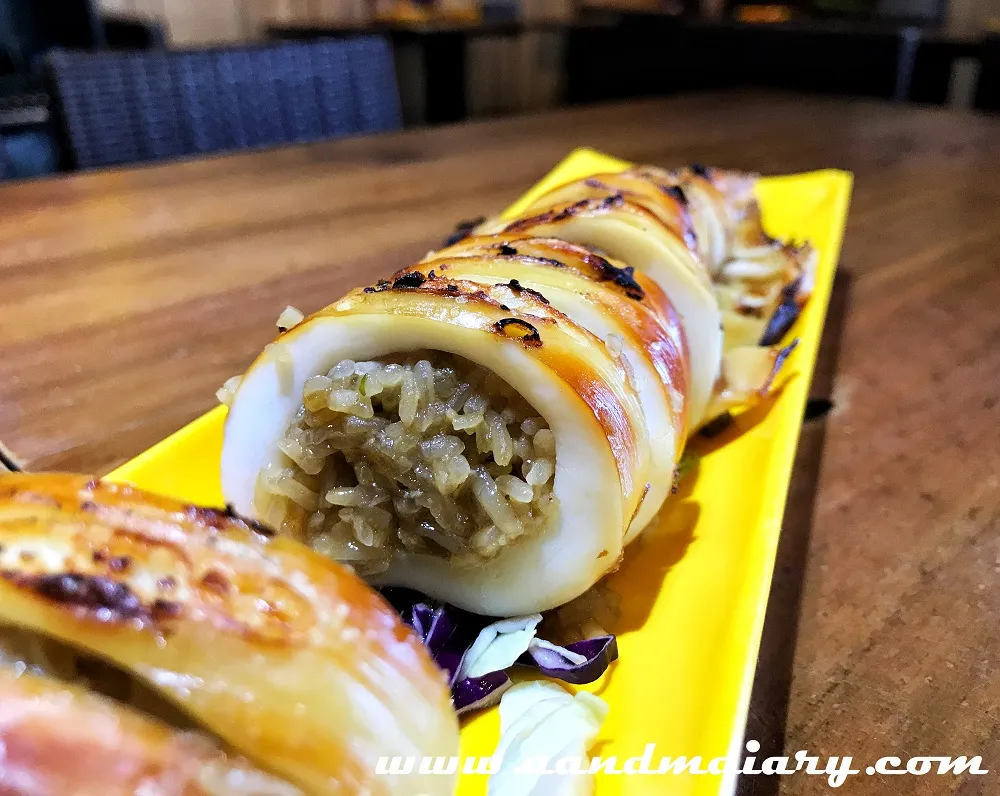大大隻鮮魷魚筒原隻上碟,賣相吸引,鮮魷魚新鮮彈牙,鮮味十足;裏面仲釀滿糯米飯,煙靭癡牙,吸晒魷魚嘅鮮味,好特別!