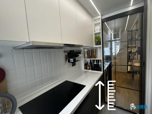 廚房檯面的高度和深度直接影響到使用者的舒適度。如果檯面太矮,使用者便時常要彎腰切菜或洗碗,不單止用得不舒適,久而久之亦會導致腰酸背痛,對身體構成長久勞損。建議在規劃檯面時,可依據使用者最舒適的高度來設計,這樣可以減少彎腰時的疲勞感。要特別留意爐具類型會影響實際使用高度,部分明火爐需考慮爐架高度(約3-5cm),而電磁爐則可直接計算檯面高度。而檯面深度則要盡量確保有足夠空間擺放常用的廚具與電器。