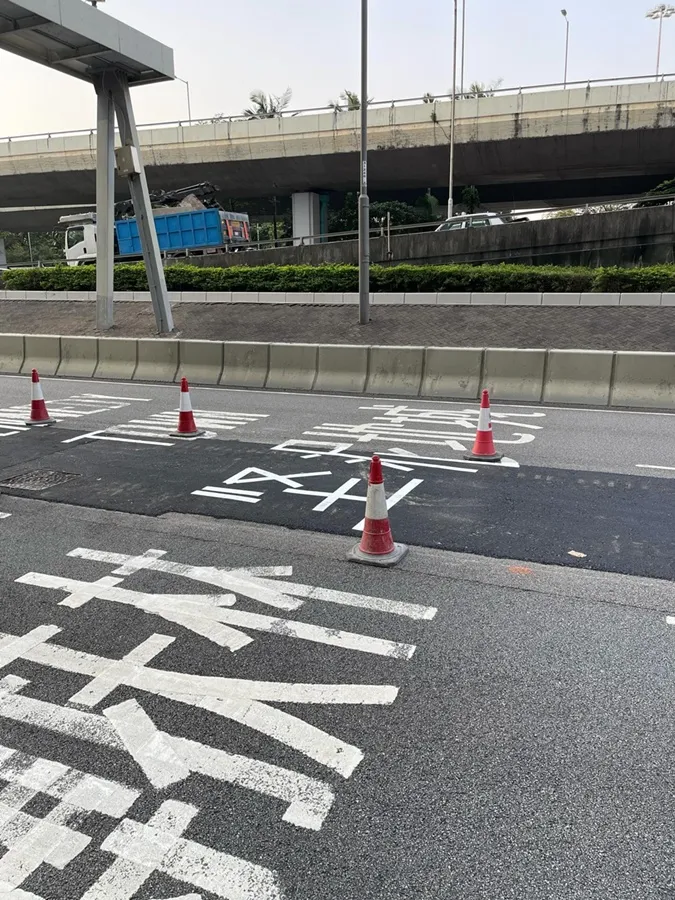 另前葵青區議會副主席張文龍昨日下班時段前往現場視察,稱「相信路面標示是最近重鋪時臨時加上,英文部分使用串法正確但中文的錯誤仍未清去」,又指到場時所有工人全為南亞裔人士。