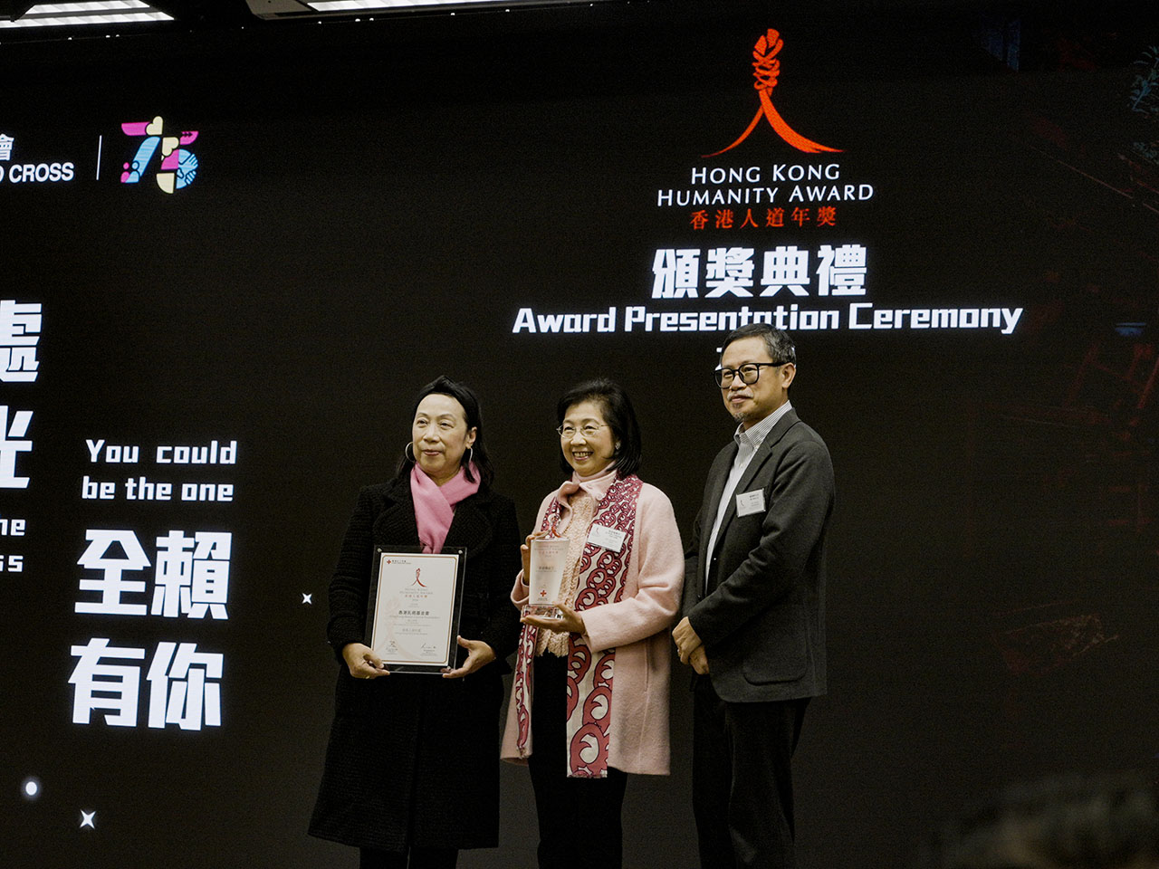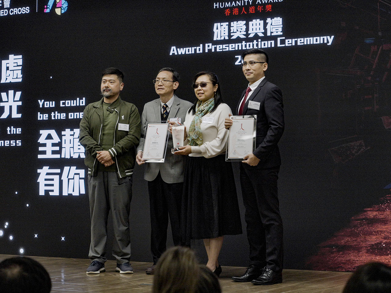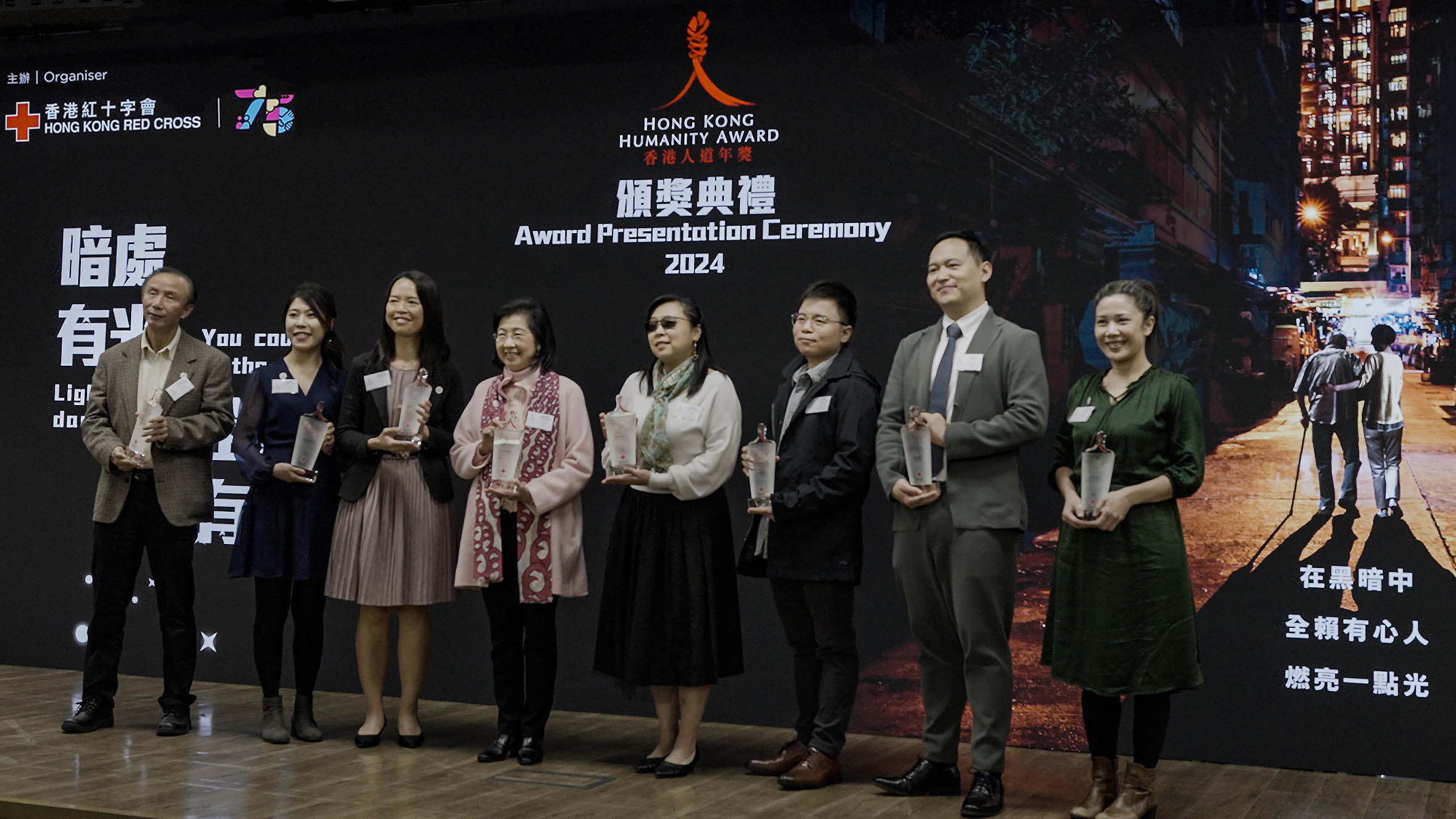 七位香港人道年獎得主包括,投身志願服務逾五十年、多次參與海外救援的資深急症室護士陳志強;香港首位視障心理治療師及臨床輔導心理學家黃明慧,她創立社企及義務團體,冀打破社會對視障人士的標籤;免費為基層針灸20年的退休護士霍熾成;創辦健康教育慈善團體關注兒童福祉的醫生梁子杏;在衝突國家或地區有7年人道工作經驗的護士及助產士李芷殷;關注乳癌防治發展的醫生張淑儀;自2010年起到海外進行人道工作的護士麥寶晶。