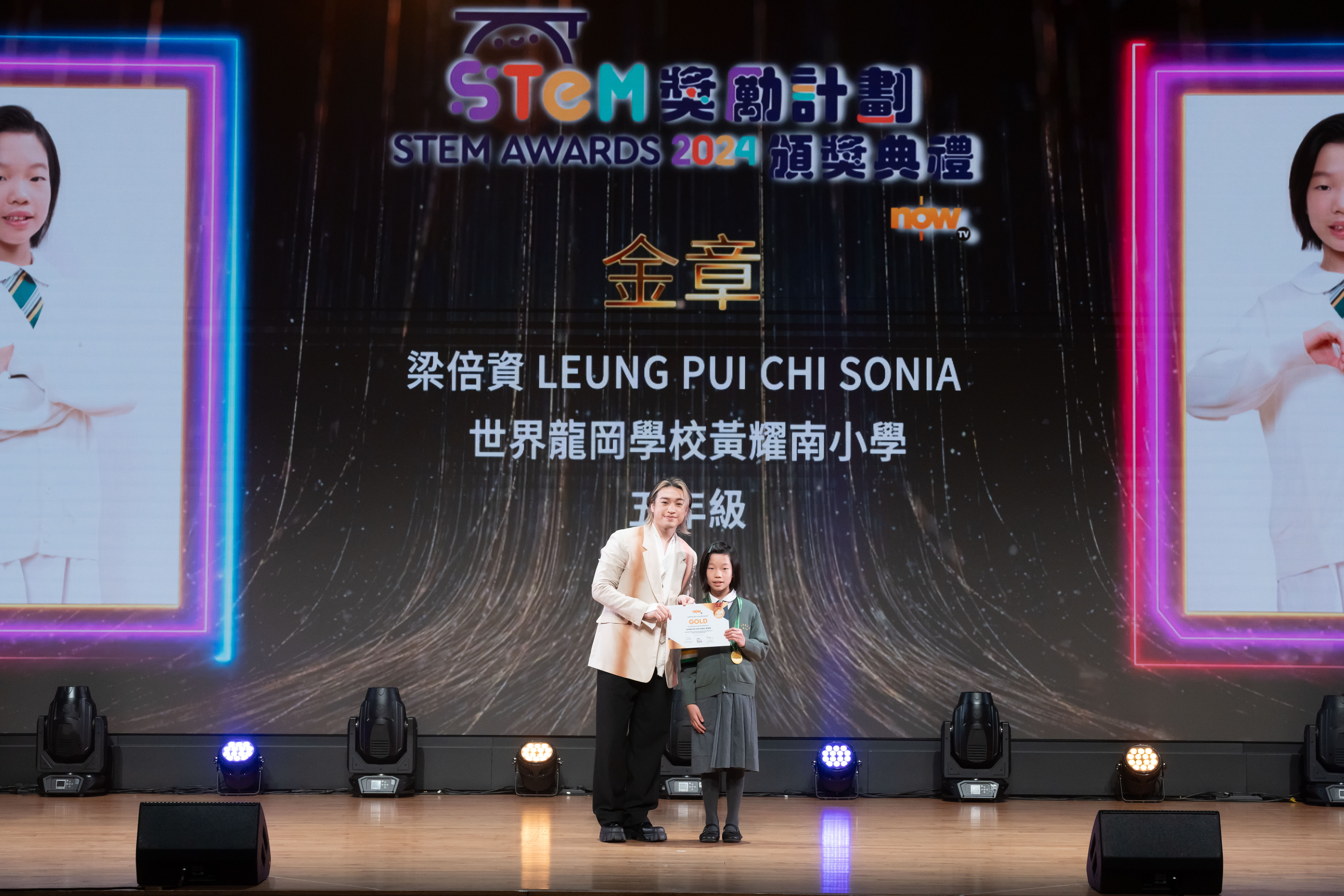 今屆有4300位同學報名參加,一共10人奪得金章,包括連續4屆獲得金章的順德聯誼總會李金小學五年級生梁翱信,他今次的「創意影片」作品是《阿基米德沙灘垃圾機械車》,利用阿基米德螺旋公式,設計沙灘機械垃圾車,省時實用,極有可用性;他同時奪得最高殊榮的「最傑出大獎」。