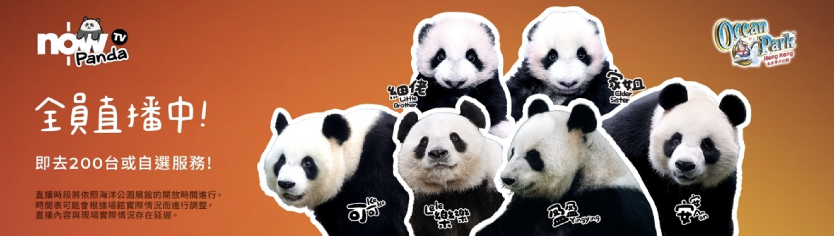 ^直播時段將依照海洋公園展館的開放時間進行。時間表可能會根據展館實際情況而進行調整,直播內容與現場實際情況存在延遲。