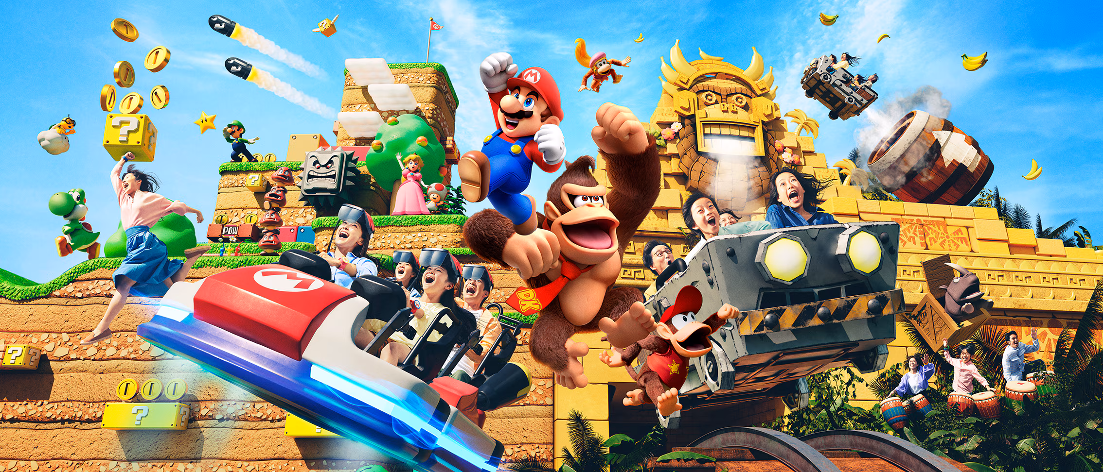 於2024年12月11日開幕的新園區「咚奇剛國度」,為超級任天堂世界第二期園區,以任天堂經典角色Donkey Kong為主題,內有過山車遊樂設施名為「大金剛的瘋狂礦車」,遊客將從砲彈木桶起飛,在叢林中飛馳,途中會跨越中斷的軌道,與大金剛和他的好友「狄狄剛」(Diddy Kong)合作,取回香蕉。