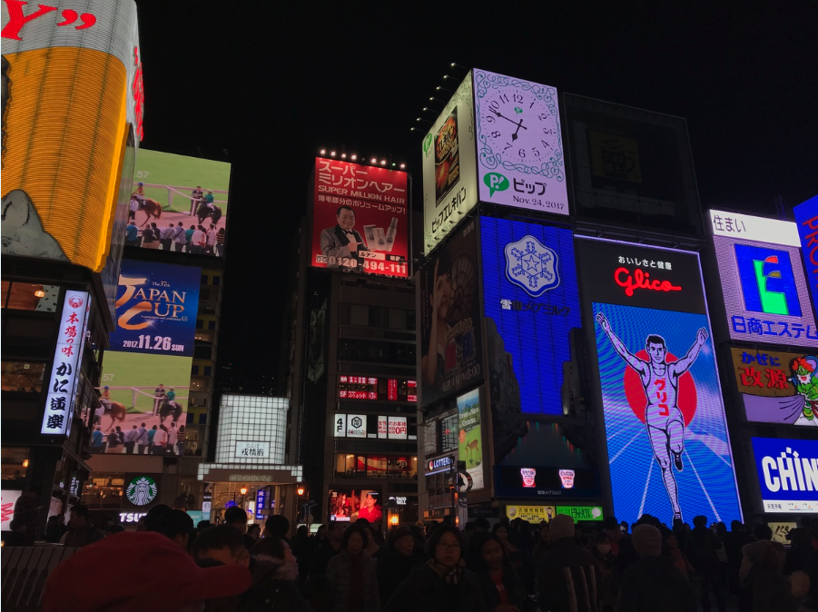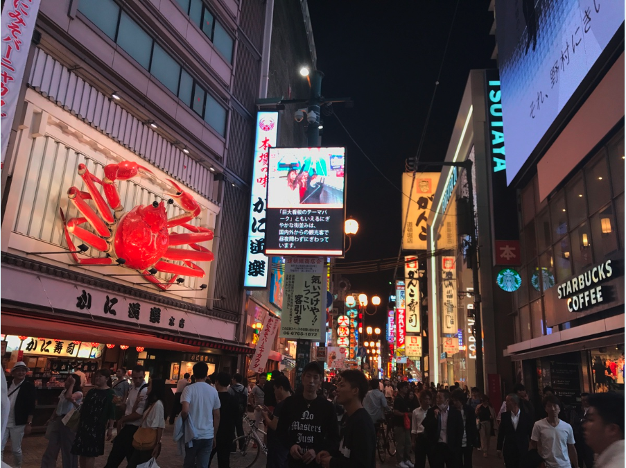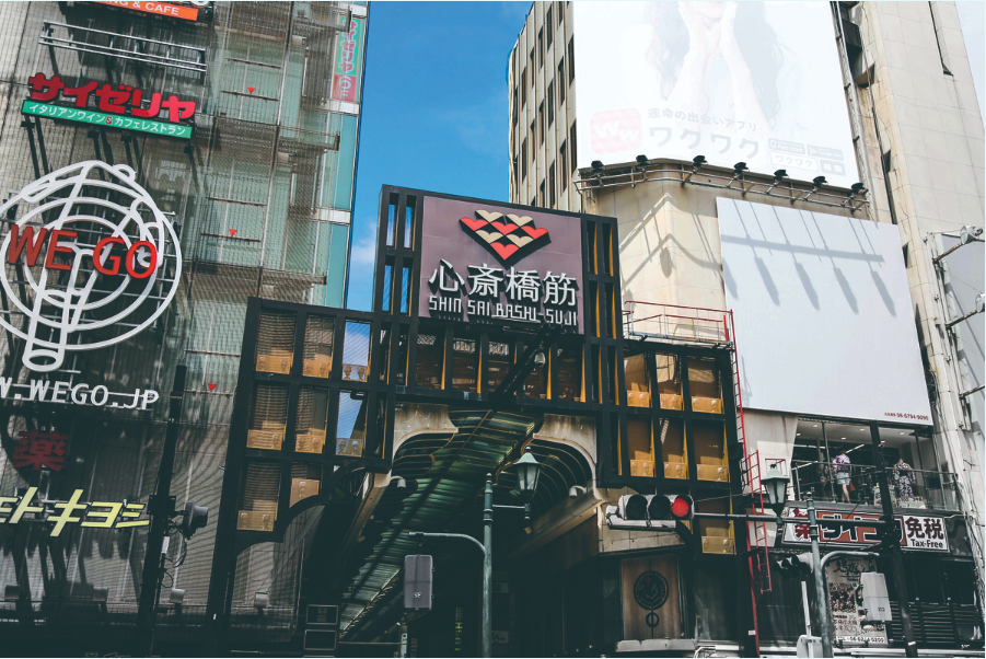 這是大阪最著名的購物區之一,擁有各種品牌商店、餐廳和咖啡館。