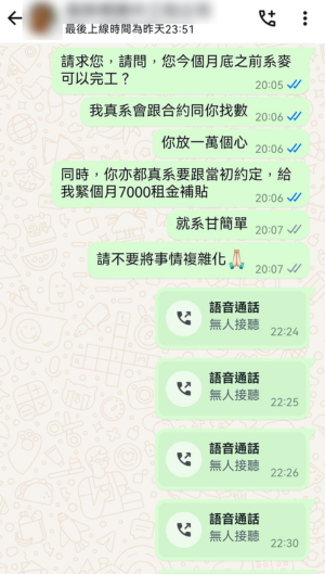 事主發現,這名師傅不僅欠該友人2萬元薪金,還在另一工程中同樣爛尾。老夫婦白白損失9萬多元的養老金,寢食難安,事主慨嘆「第一次裝修,冇經驗」、「都唔求要捉人封舖,但求佢完成間屋。」事主雖已報警,但警方建議轉向海關處理。她決定將事件公開,希望喚醒大眾注意,避免再有家庭受騙。