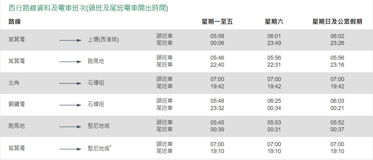 本文列出部分重點旺區的尾班車時間,詳情可以到港鐵網頁查閱。