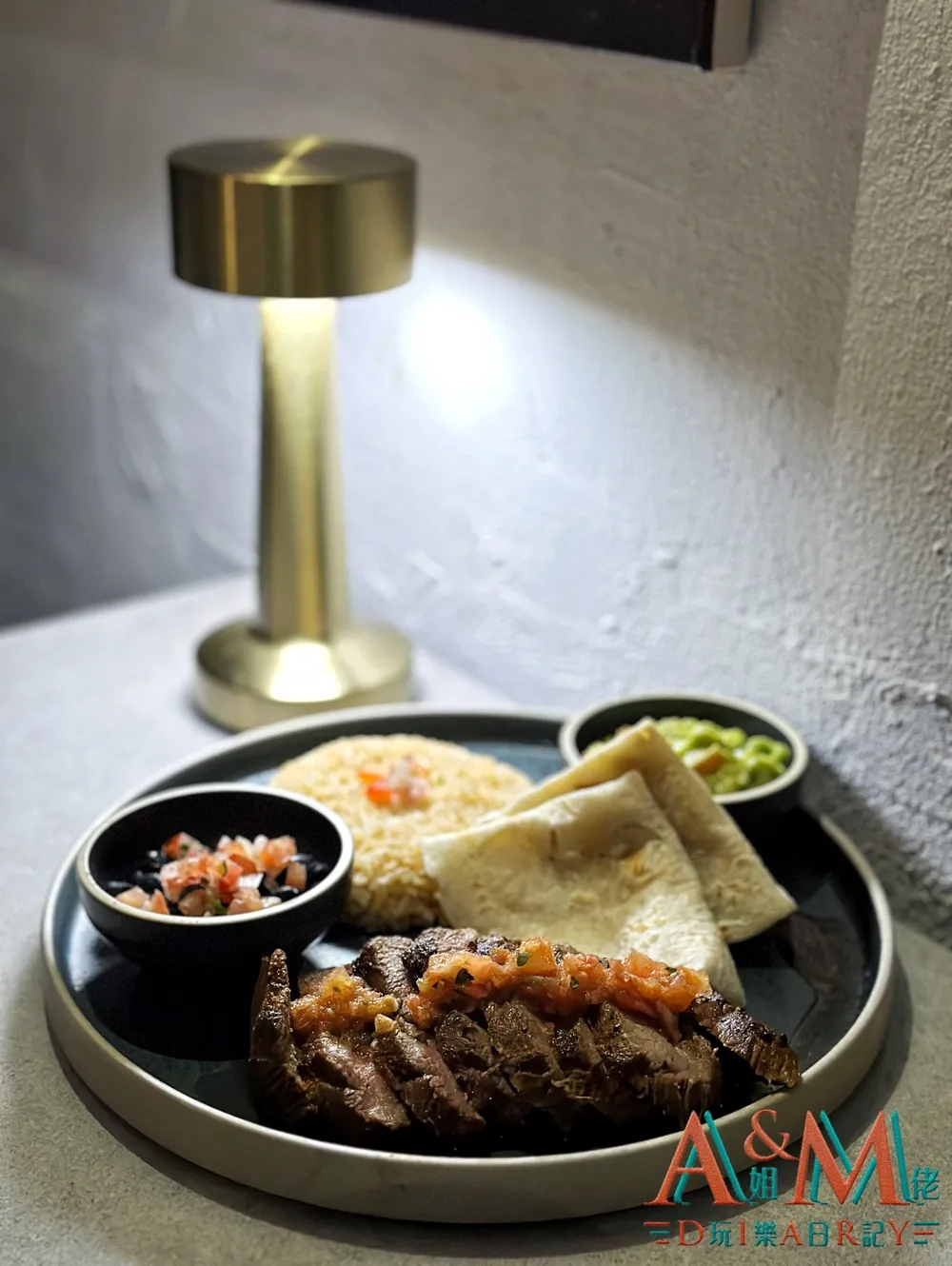 主食嘅Carne Asada上枱嘅時候,真係令人充滿驚喜。調味草飼裡脊肉烤得非常完美,生熟程度燒得啱啱好,咬落去一啲都唔韌,非常juicy!呢份主菜配上米飯、黑豆、鱷梨醬同薄餅等。但講到我認為嘅最佳配搭,就係拎一塊薄餅,塗上少少牛油果醬,再放上一片裡脊肉,可以中和返肉類嘅油膩感,加添清新嘅感覺。