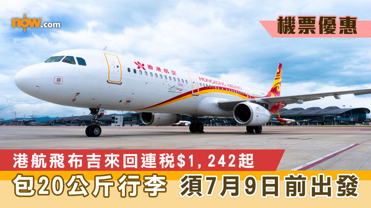 【Now.com】香港航空Mega Sale,即日至3月27日飛布吉來回連稅$1,242起,包20公斤行李;旅行日期為5月8日至7月9日前,航班時間午機去午機返。