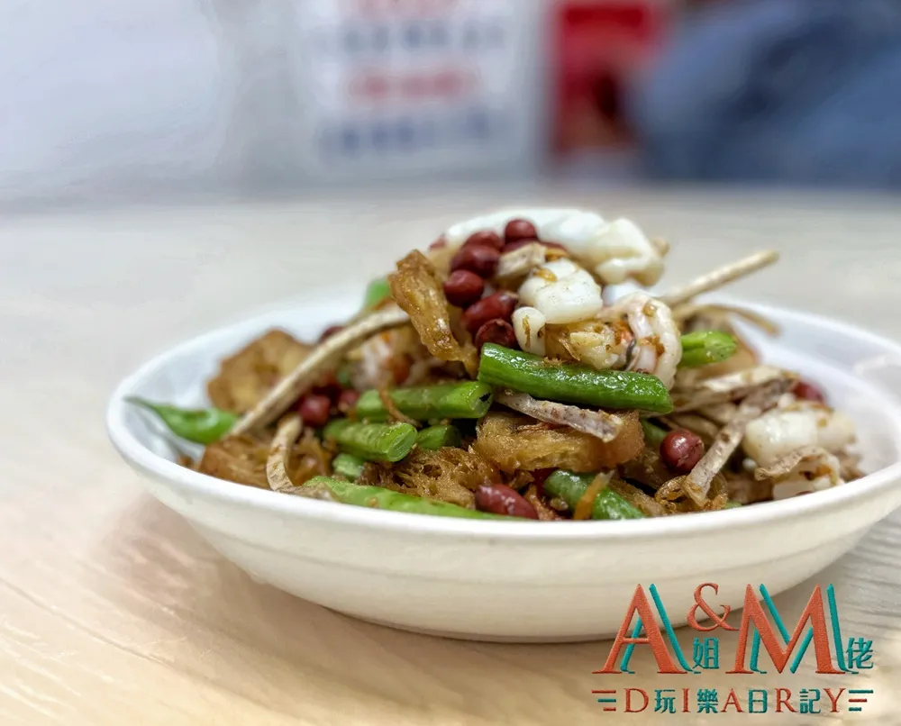 美味苑嘅海鮮小炒王用料豐富,魷魚、蝦、銀魚仔、花生、豆角同芋條等材料,夠晒鑊氣,而且鮮味十足,而且巧妙用上唔同顏色,令到呢碟海鮮小炒王嘅賣相色彩豐富,而味道充滿鹹香,色香味俱全。