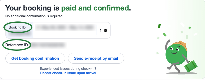 Booking ID: [訂單顯示的參考預訂編號]