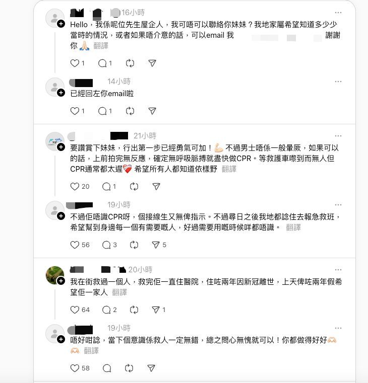 發帖者稱,胞妹因不懂急救感到內疚,「我阿妹問過警察佢啲脈搏點樣,個警察話佢嘅脈搏都好微弱。阿妹覺得唔開心,佢話如果識急救就好啦」,又透露二人日後會報讀急救班,「希望幫到身邊每一個有需要嘅人,好過需要用嘅時候咩都唔識。」