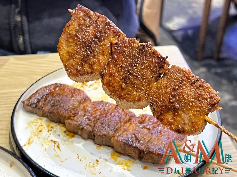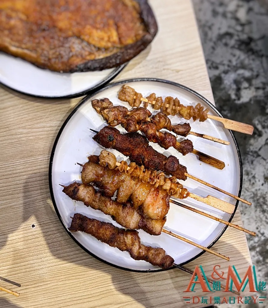 我哋另外叫咗五花腩肉串、豬頸肉、日本一口和牛粒、雞腎串、脆香雞皮,特別喜歡油份平均嘅五花腩肉串同豬頸肉,如果喜歡脆口嘢嘅話,脆香雞皮就一定要叫,炸到脆卜卜,夠晒香口。